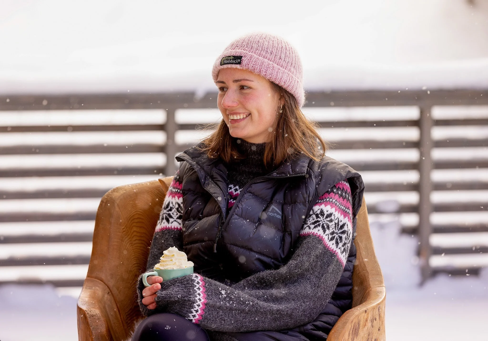 We’ll be staying in a modern mountain hotel, with a riverside sauna, three-course dinners, and yoga sessions designed for recovery. Everything's arranged so you can focus on skiing further and faster than before.