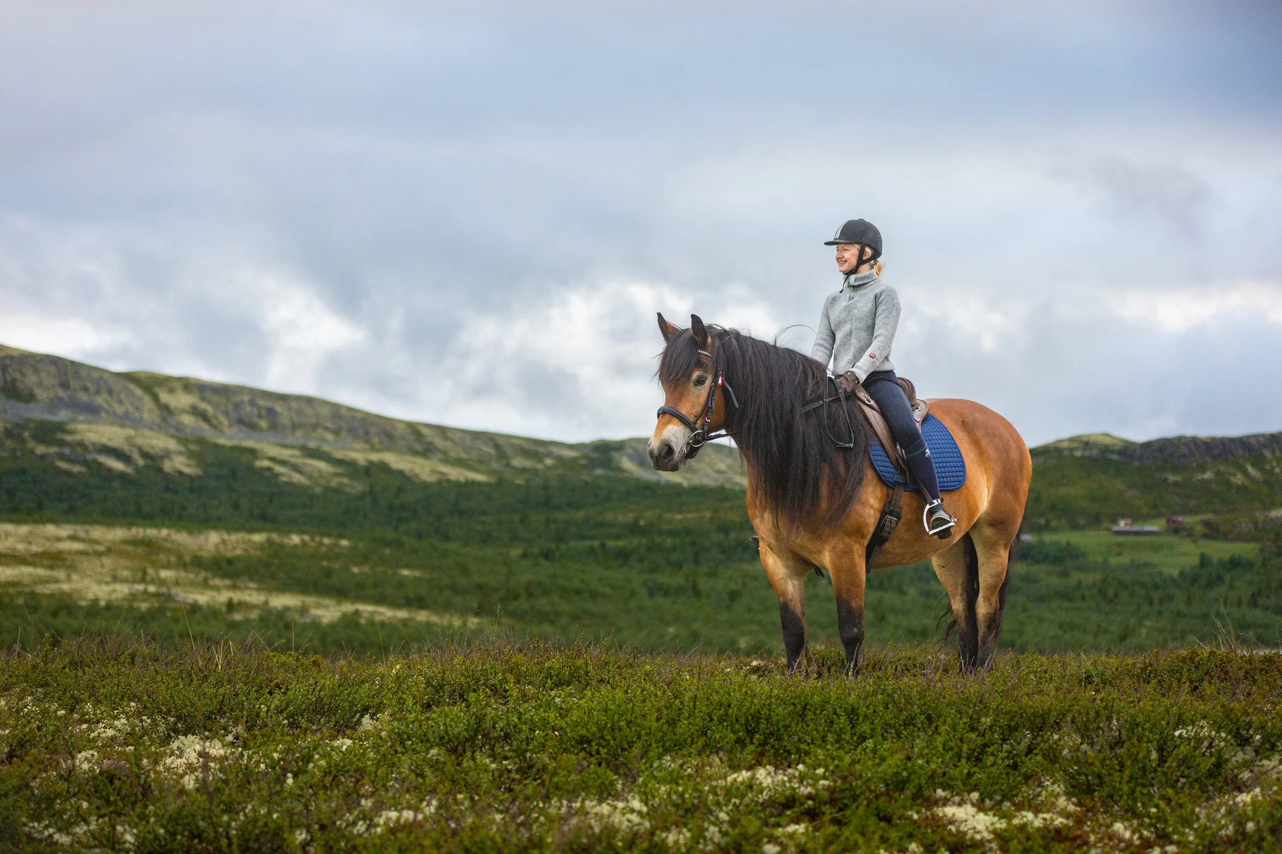 Calm, sure-footed and full of character, the Norwegian Døle horse is built for this kind of terrain. You'll be paired with your own horse at the start of the week, and they'll be yours for the duration. Don't let the steady temperament fool you; these horses have personality, and getting to know yours is half the experience.