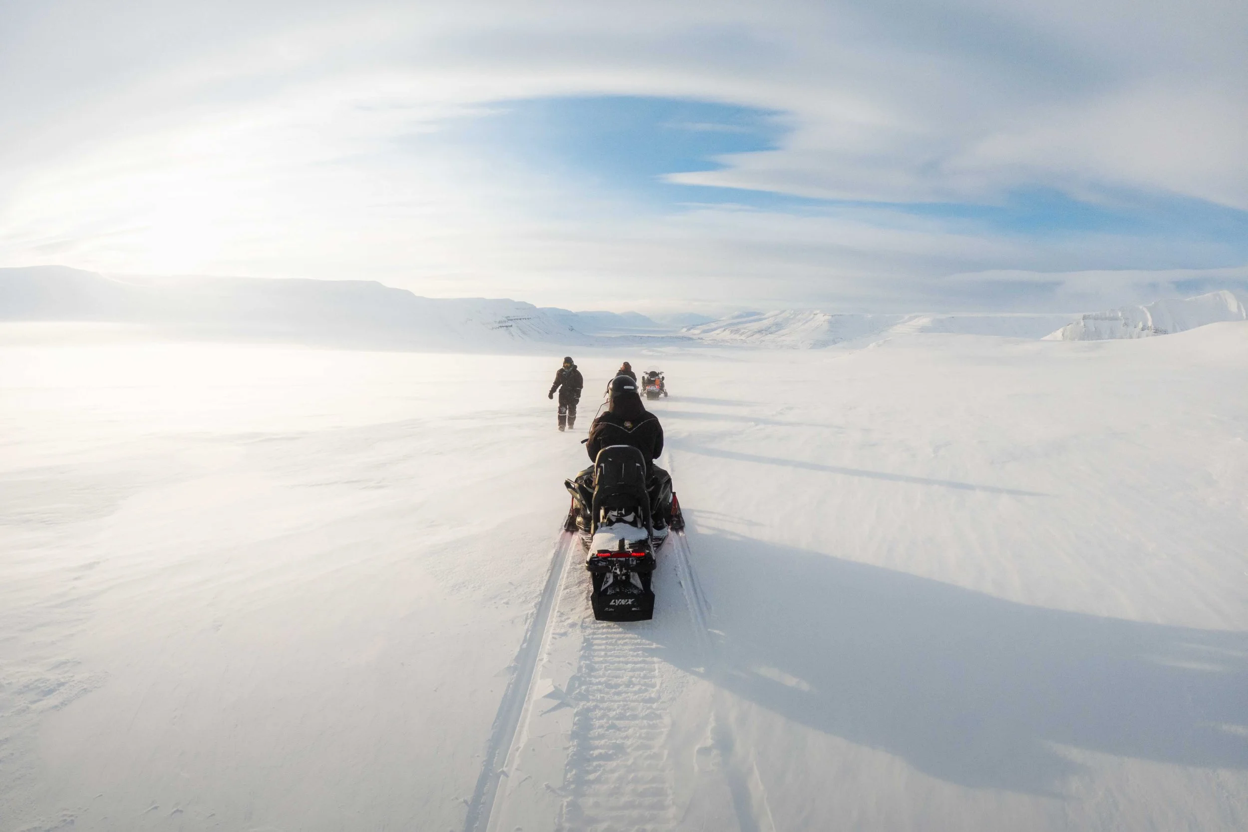 Spend three days driving 100-140km daily along Svalbard's remote east coast – ice plains, mountain passes, frozen polar bear territories. No experience necessary, just a clean drivers license.